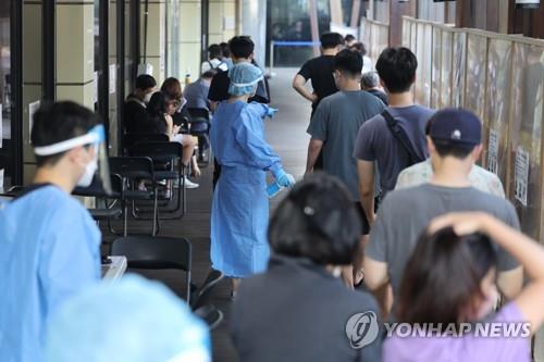 | ▲ People wait in line for tests at a COVID-19 testing center in southeastern Seoul on Aug. 12, 2022. (Yonhap) |