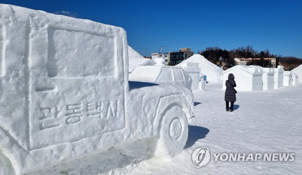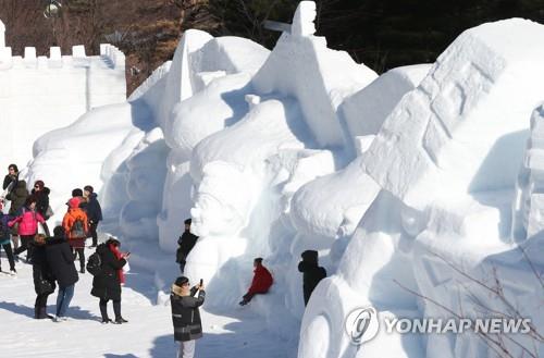 | ▲ Visitors look at ice sculptures during the 2020 Mount Taebaek Snow Festival at Mount Taebaek National Park in Taebaek, Gangwon Province, on Jan. 11, 2020. (Yonhap) |