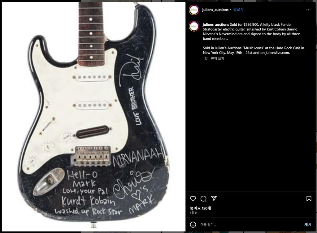 | ▲ 경매에 올려진 커트 코베인의 기타 [줄리언 옥션 인스타그램캡쳐. DB 및 재판매 금지] |