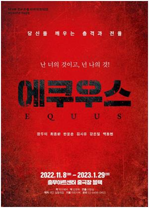 극단 실험극장은 연극 '에쿠우스'를 오는 11월 8일부터 내년 1월 29일까지 서울 충무아트센터 중극장 블랙에서 공연한다고 9일 밝혔다.