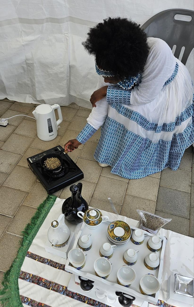 에티오피아에서 온 바리스타가 에티오피아 전통 방식의 커피를 선보이며 큰 인기를 끌었다.