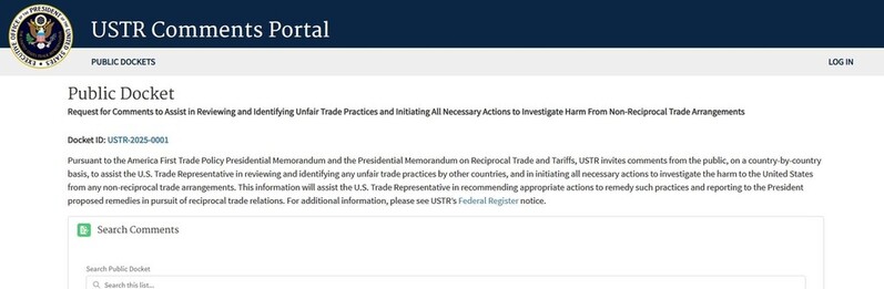 | ▲ 미 무역대표부의 의견수렴 포털 [미국 무역대표부 홈피 캡처.재판매 및 DB금지] |