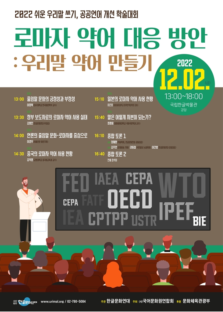 학술대회에서는 줄임말 문화를 짚고 로마자 약어 사용 실태를 분석할 계획이다.