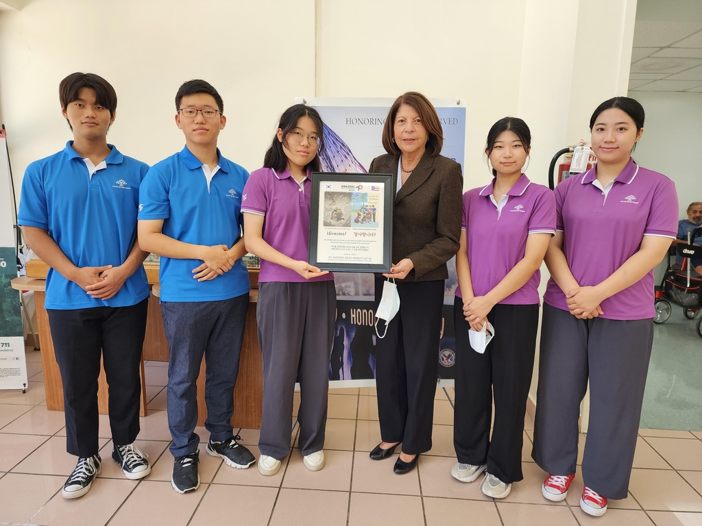 정은영(영산대), 박수연(대동대), 김경언(경희대), 추은상(배재대), 라령(문일여고 졸업) 씨 등은 최근 푸에르토리코의 후아니디아스 시에 있는 참전용사 요양센터를 찾아 베테랑 14명에게 한국 이름을 지어 감사를 표하는 액자에 담아 전달했다.