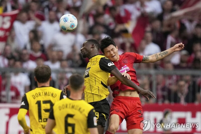 | ▲ 도르트문트와 경기에서 공중볼을 다투는 뮌헨 김민재(오른쪽). [AP=연합뉴스] |