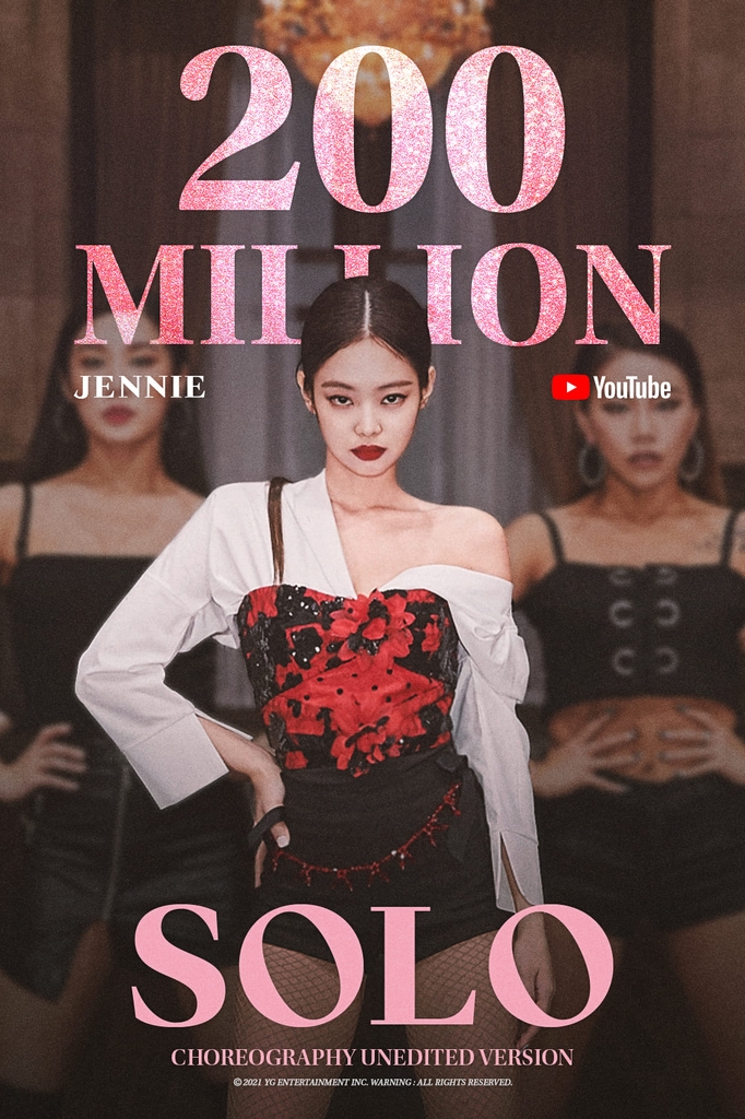 | ▲ 블랙핑크 제니 '솔로' 안무영상 2억뷰 돌파 [YG엔터테인먼트 제공. 재판매 및 DB 금지] |
