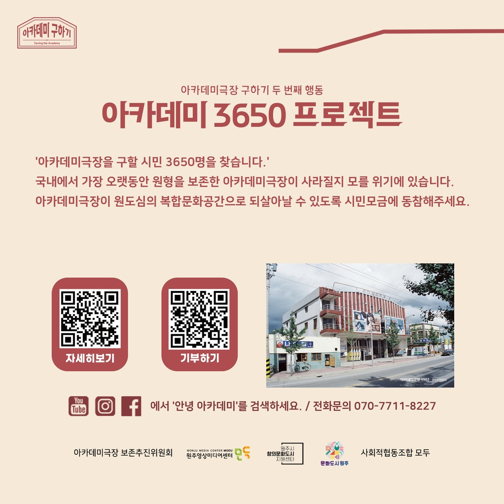 프로젝트는 철거 위기에 놓인 아카데미극장을 보존하겠다는 시민 의지를 담아 지난달 15일 시작됐다.