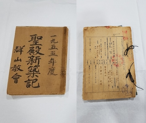 | ▲ 군산 둔율동 성당 성당신축기(왼쪽)와 건축허가신청서 [문화재청 제공. 재판매 및 DB 금지] |