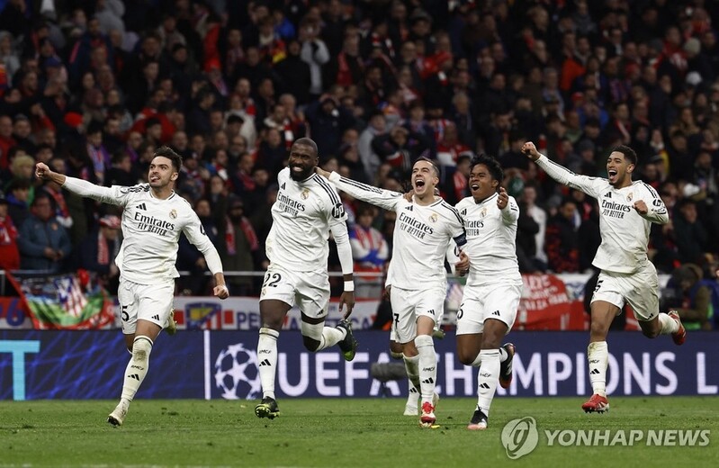 | ▲ 아틀레티코 마드리드와 경기 후 기뻐하는 레알 마드리드 선수들. [로이터=연합뉴스] |