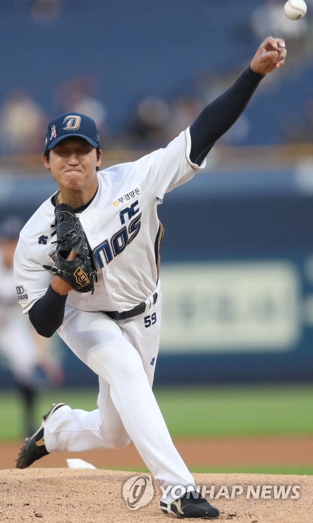 | ▲  In this file photo from June 3, 2022, Koo Chang-mo of the NC Dinos pitches against the Lotte Giants during a Korea Baseball Organization regular season game at Changwon NC Park in Changwon, 380 kilometers southeast of Seoul. (Yonhap) |