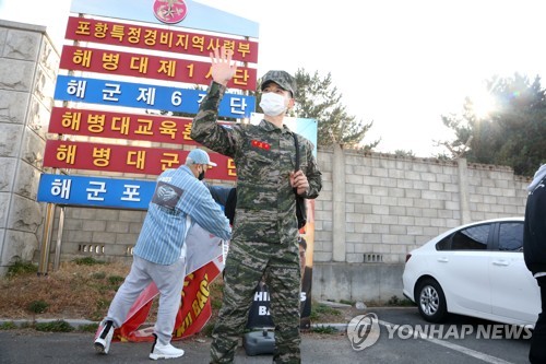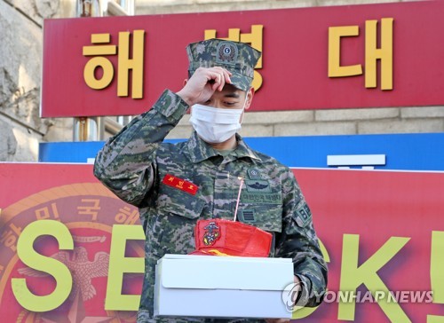 (포항=연합뉴스) 손대성 기자 = 해병대 복무 중 '말년휴가'를 반납하며 전역을 미뤘던 보이그룹 샤이니 최민호가 15일 전역했다.