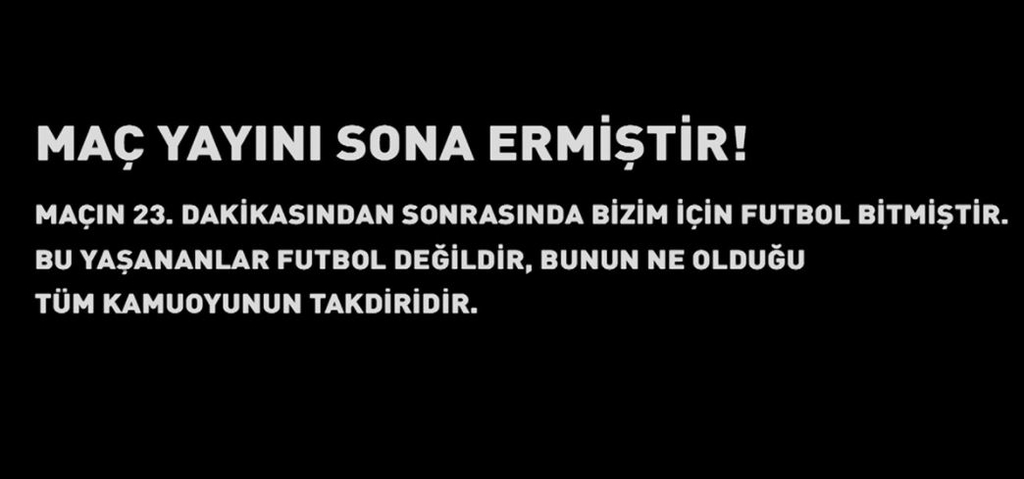 화면은 검게 변했고 "우리의 축구는 23분 만에 끝났다. 이것은 축구가 아니다"라는 내용의 글이 등장했다.