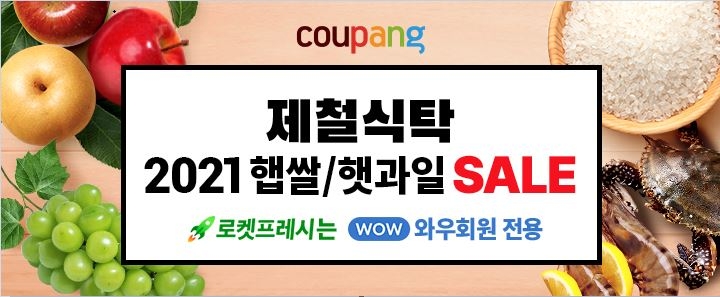 온라인 쇼핑몰 쿠팡은 이날부터 햅쌀, 햇과일, 제철 수산과 채소를 할인 판매하는 '로켓프레시 제철식탁 기획전'을 연다.