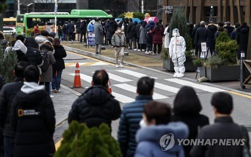 | ▲ People line up to get tested for COVID-19 at a makeshift clinic in Seoul on Dec. 9, 2021. (Yonhap) |