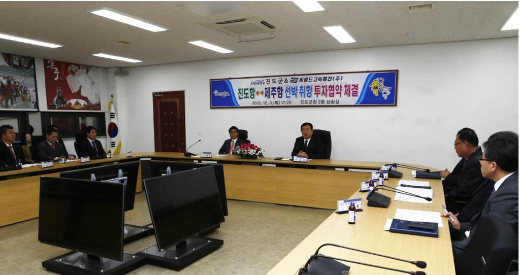군은 지난 2015년 씨월드고속훼리와 협약을 체결하고 현재 진도항에 여객선 터미널과 친수공간, 부두 접안시설, 여객 탑승과 차량 선적 시설, 주차장 조성 등을 추진하고 있다.