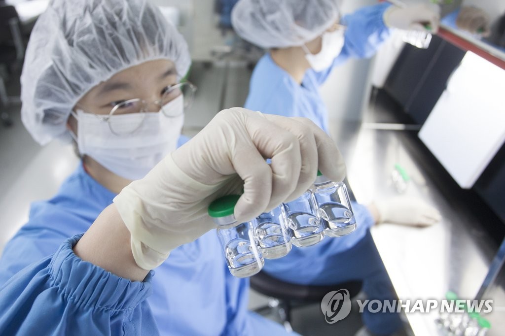 | ▲ This photo, provided by SK Bioscience Co. on Aug. 11, 2022, shows researchers checking SKYCovione, the country's first homegrown COVID-19 vaccine developed by SK Bioscience. (PHOTO NOT FOR SALE) (Yonhap) |