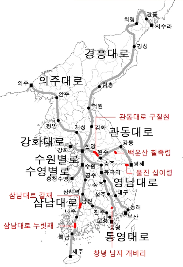| ▲ 조선 9개 대로와 명승 옛길 [문화재청 제공. 재판매 및 DB 금지] |