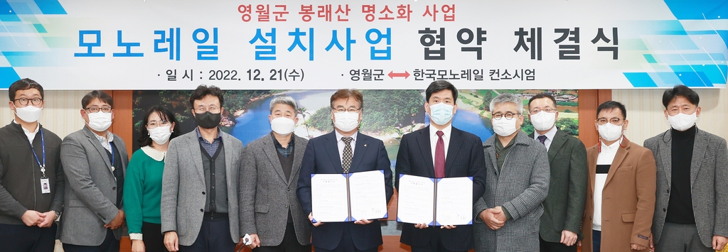 영월군은 지난 21일 한국모노레일 컨소시엄과 봉래산 명소화 사업 중 모노레일 설치사업 협약을 했다.