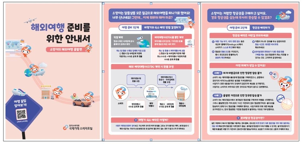 (서울=연합뉴스) 이신영 기자 = 한국소비자원은 최근 코로나 방역 완화로 해외여행 수요가 늘고 있는 점을 고려해 소비자 피해를 막기 위한 안내서를 제작해 배포했다고 11일 밝혔다.