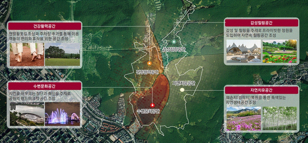 자연치유 공간은 훼손된 생태 수림을 복원해 피톤치드길, 반딧불이 정원 등으로 꾸민다. 전망대도 설치한다.