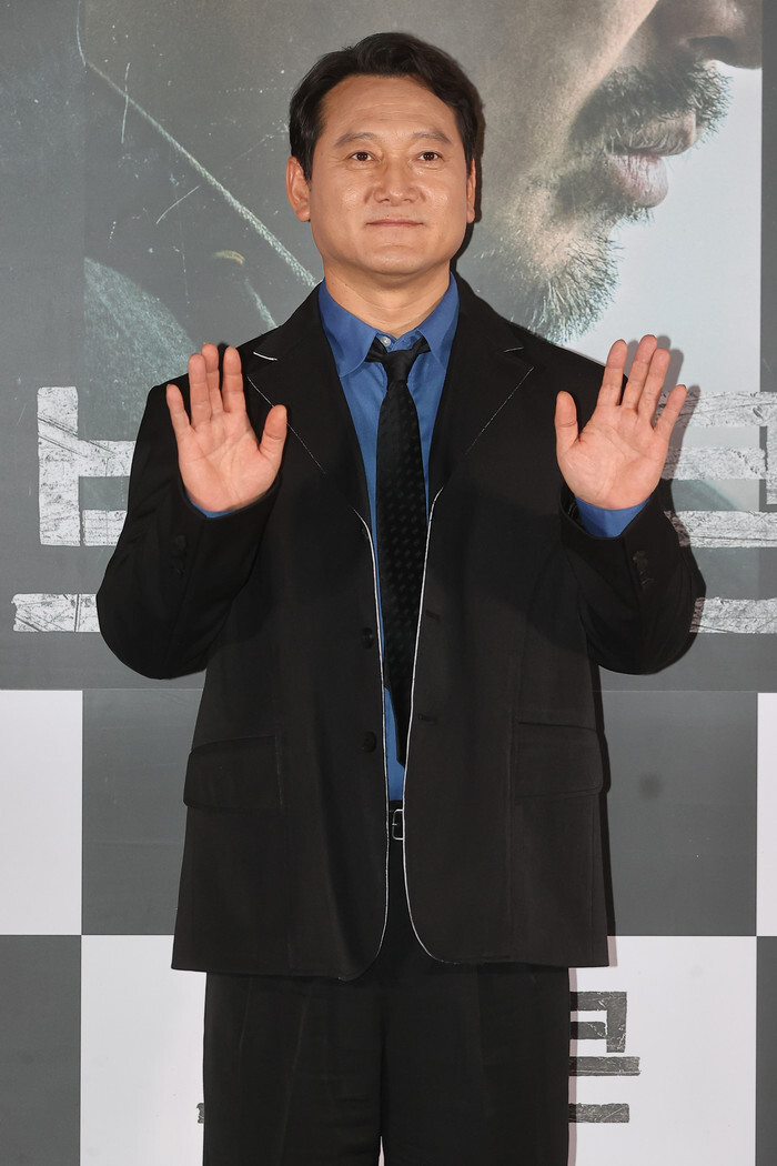 South Korean actor Jung Man-sik, who stars in the new movie "Nocturnal," poses for a photo during an event in Seoul on Jan. 23, 2025, to promote the movie, set to hit local screens in South Korea on Feb. 5. (Yonhap)