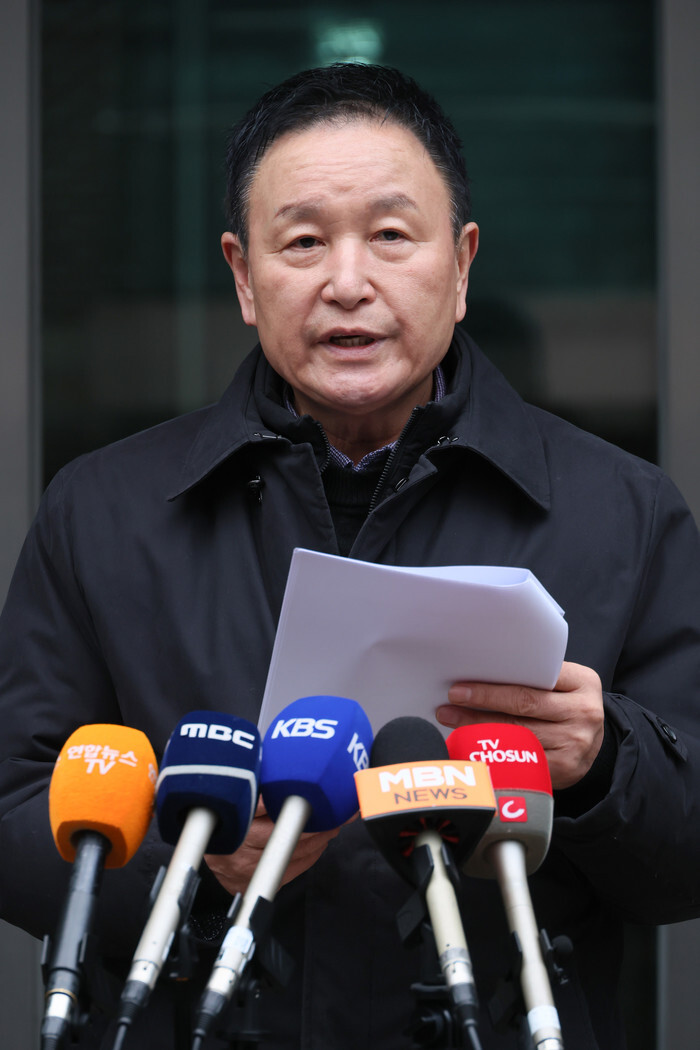 Huh Jung-moo, a candidate for the upcoming election for Korea Football Association (KFA) president, speaks during a hastily convened press conference at the KFA headquarters in Seoul on Jan. 22, 2025. (Yonhap)