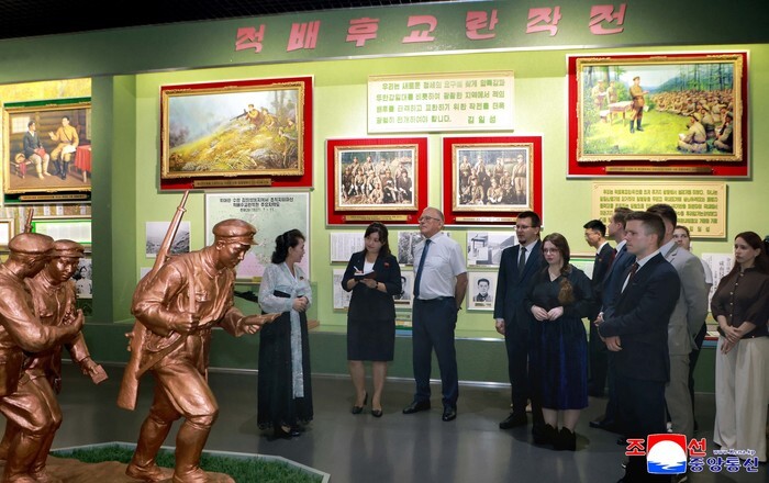 Officials of foreign embassies and missions of international bodies in Pyongyang visit the Korean Revolution Museum in the North Korean capital on Aug. 13, 2025, ahead of the 80th anniversary on Aug. 15 of Korea's liberation from Japan's 1910-45 colonial rule of the Korean Peninsula, in this photo released by the North's official Korean Central News Agency the next day. (For Use Only in the Republic of Korea. No Redistribution) (Yonhap)