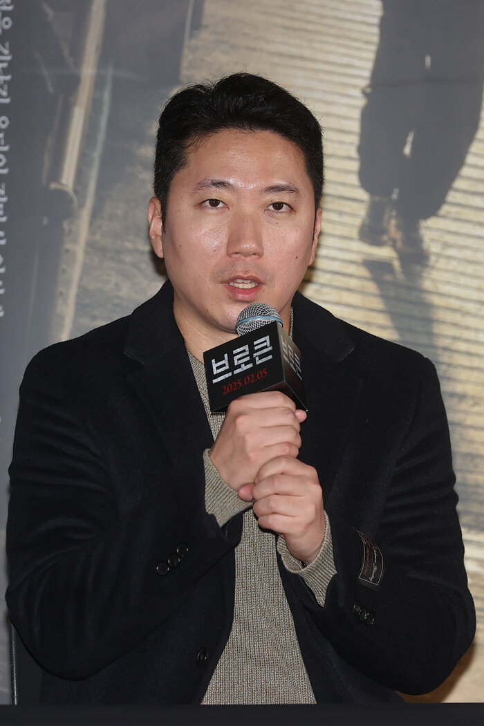 South Korean director Kim Jin-hwang responds to reporters' questions during an event for the new movie "Nocturnal" in Seoul on Jan. 23, 2025, to promote the movie, set to hit local screens in South Korea on Feb. 5. (Yonhap)