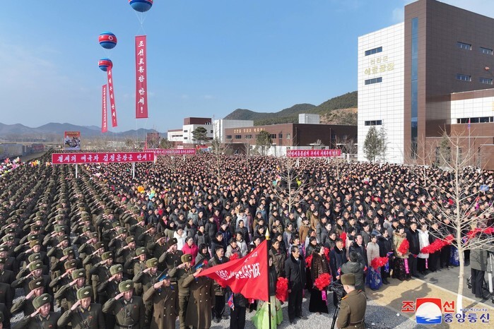 This photo, released by North Korea's official Korean Central News Agency on Jan. 17, 2025, shows the inauguration ceremony of a regional factory being held in Yontan County, North Hwanghae Province, the previous day. The dedication of the factory is part of a project that the North's leader Kim Jong-un set forth in January 2024 to build modernized factories in 20 cities and counties over the next decade to enhance the living standards of the people. (For Use Only in the Republic of Korea. No Redistribution) (Yonhap)