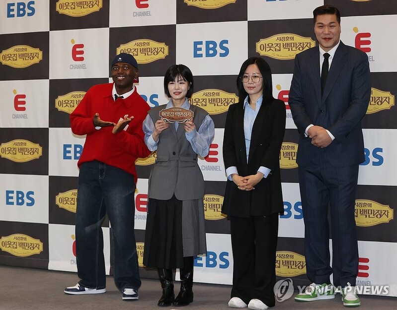 | ▲ '서장훈의 이웃집 백만장자' (서울=연합뉴스) 강민지 기자 = 8일 서울 중구 프레스센터에서 열린 EBS E채널 공동 제작 '서장훈의 이웃집 백만장자' 제작발표회에서 참석자들이 포즈를 취하고 있다. 왼쪽부터 방송인 조나단, 김민지PD, 박소현PD, 서장훈. 2025.4.8 mjkang@yna.co.kr |