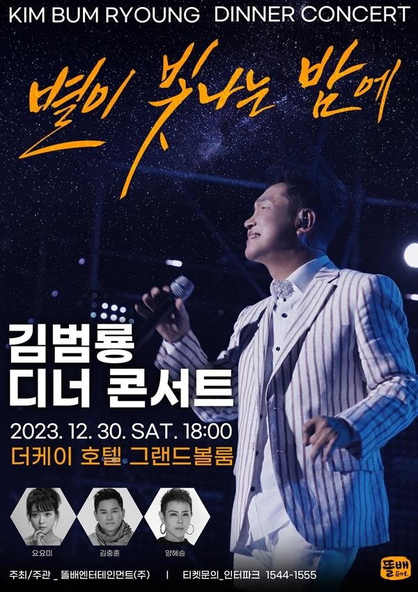 공연에서 김범룡은 신곡 '별이 빛나는 밤에'를 비롯해 다수의 히트곡을 선보일 예정이다. 가수 김충훈과 양혜승, 트로트계 아이돌 요요미 등이 게스트로 참여한다.