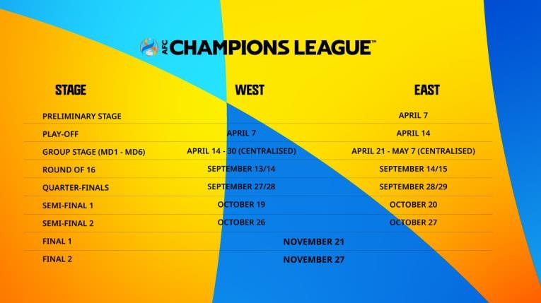 The Asian Football Confederation (AFC) said the group stages for its signature club tournament, AFC Champions League, will be played in yet-to-be-determined centralized locations for the West and East regions.