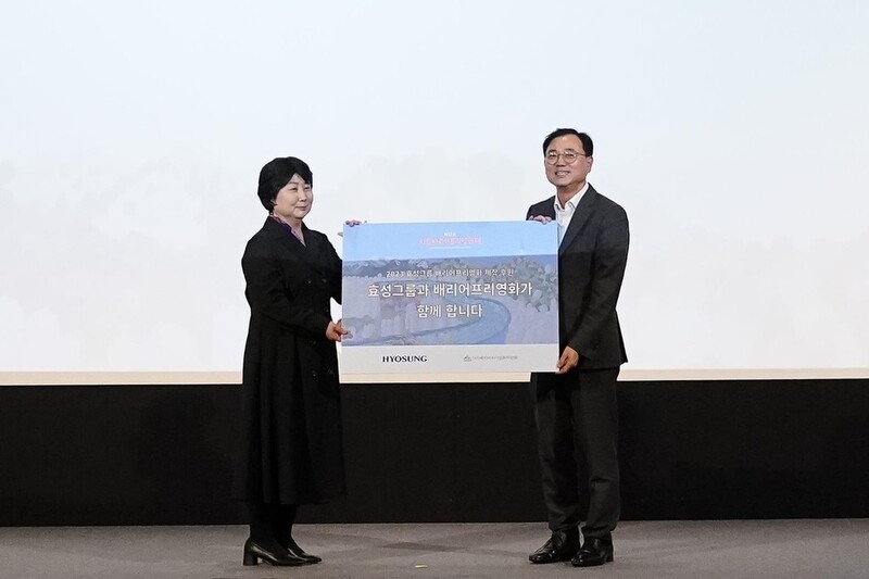 (서울=연합뉴스) 임기창 기자 = 효성[004800]은 지난 7일 서울 마포구 한국영상자료원 시네마테크KOFA에서 열린 제13회 서울배리어프리 영화제 개막식에서 배리어프리영화위원회에 지원금 2천만원을 전달했다고 8일 밝혔다.