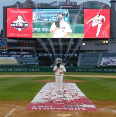 2019시즌을 마지막으로 은퇴한 채병용은 전력분석원으로 변신했고, 이날 뒤늦은 은퇴식도 치렀다.