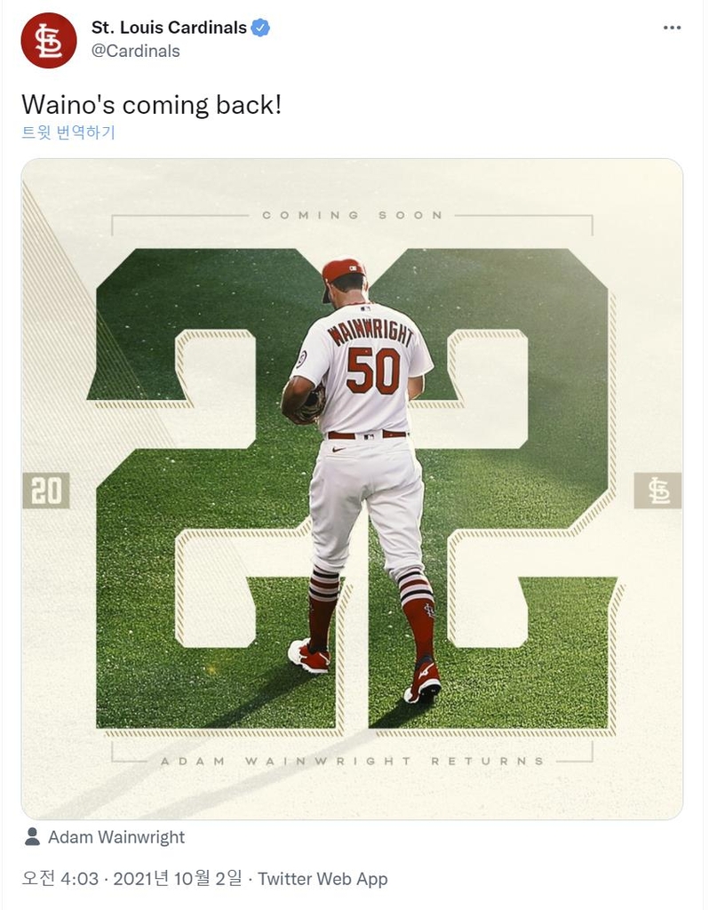 세인트루이스 구단은 2021년 정규리그 마지막 3연전을 시작한 2일(한국시간), 웨인라이트와 계약을 1년 연장했다고 발표했다.