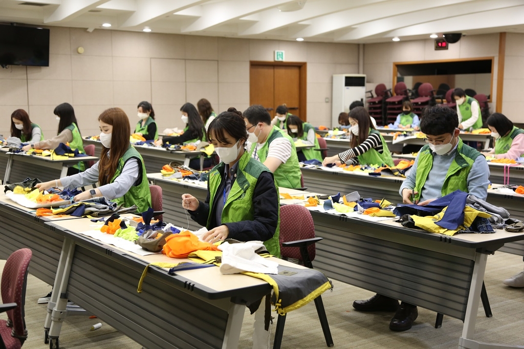 [게시판] 코오롱 임직원들, 유기견 위해 놀이담요 제작 봉사