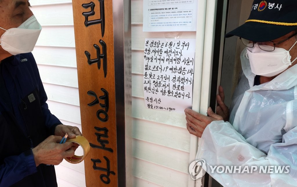 | ▲ A senior community center in western Seoul allows the entrance of members who have received at least one dose of the COVID-19 vaccine on May 31, 2021. (Yonhap) |