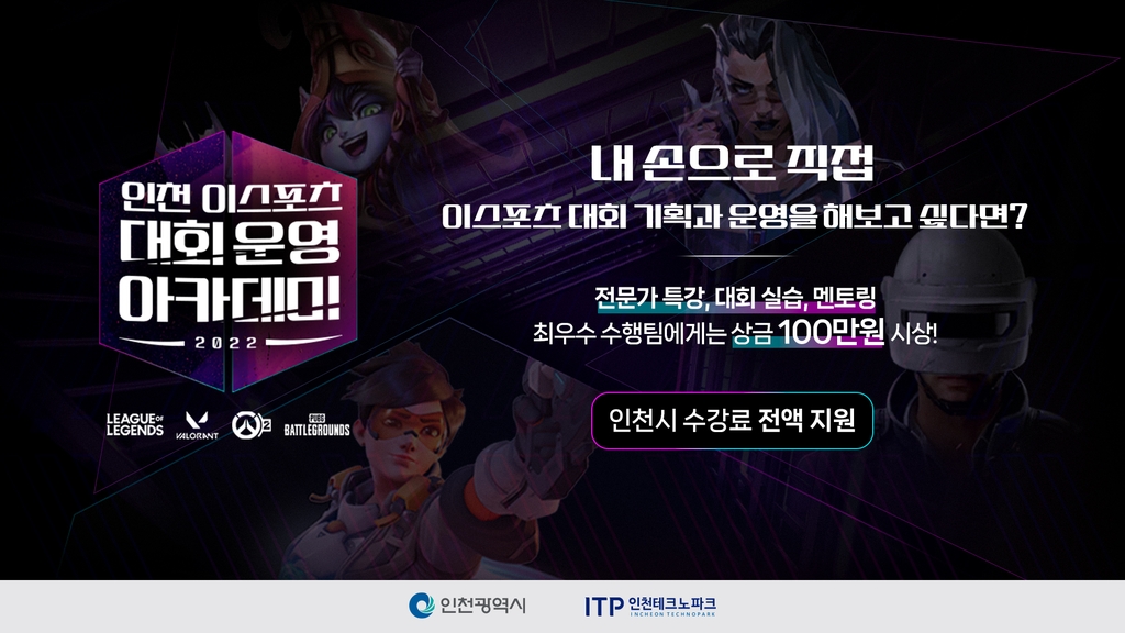 (서울=연합뉴스) 김주환 기자 = 국내외 여러 프로게임단을 운영하는 글로벌 기업 젠지(Gen.G)는 인천시가 주최하고 인천테크노파크가 주관하는 '인천 e스포츠 대회 운영 아카데미' 운영사로 선정돼 수강생을 모집한다고 25일 밝혔다.