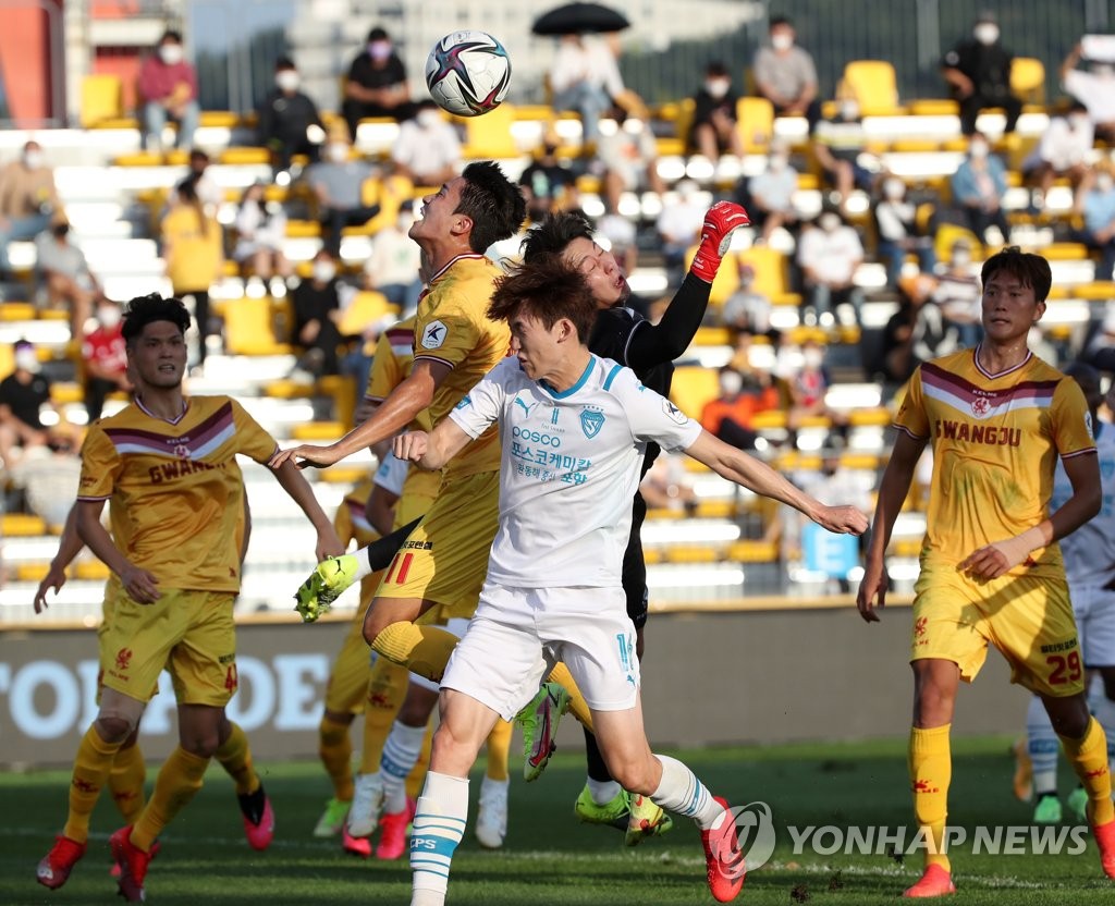 광주는 전반 16분 김주공이 오른쪽 측면에서 올린 크로스에 이은 허율의 예리한 헤딩 슛이 골대를 빗나가 포항 선수들의 가슴을 철렁이게 했다.