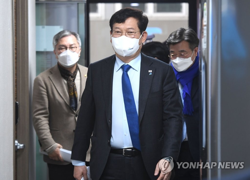 | ▲ Democratic Party Chairman Rep. Song Young-gil arrives at the party's headquarters in Seoul on Jan. 28, 2022. (Pool photo) (Yonhap) |