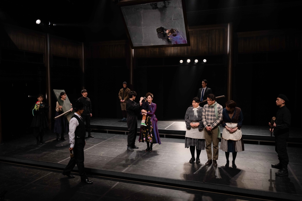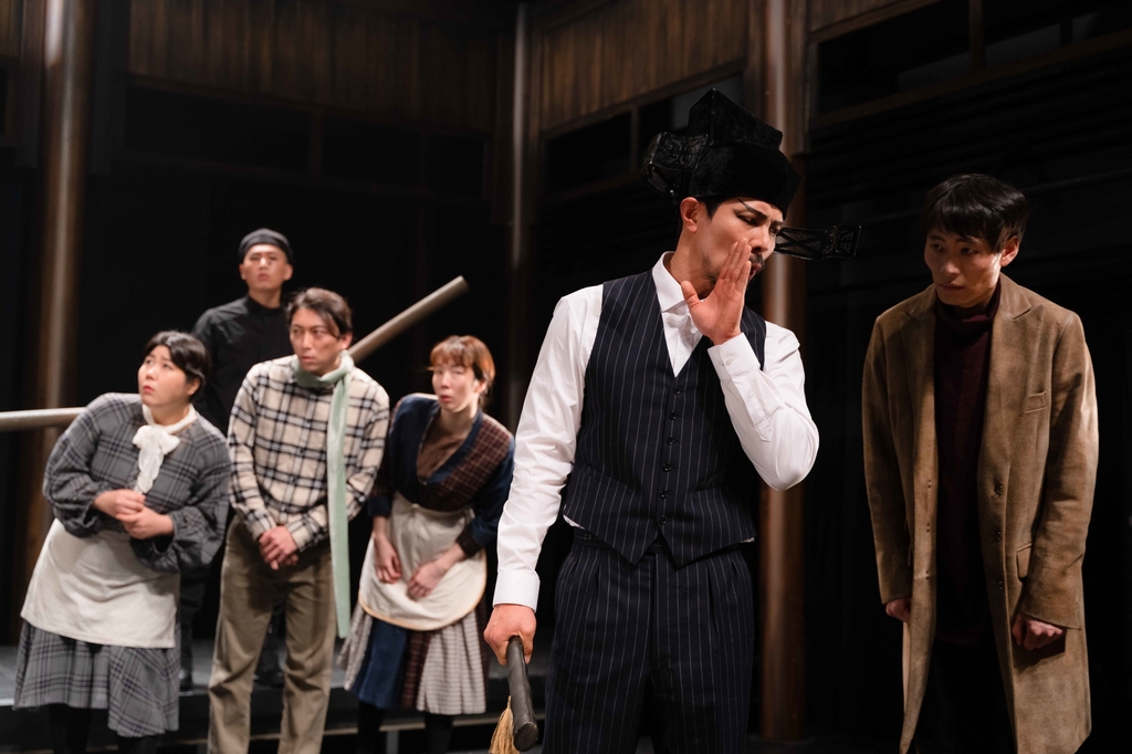 금색 기둥 8개가 두른 심플한 무대는 만화 속 캐릭터를 연상시키는 배우들의 과장된 움직임과 신파극을 떠올리는 리듬감 있는 대사로 채워졌다.