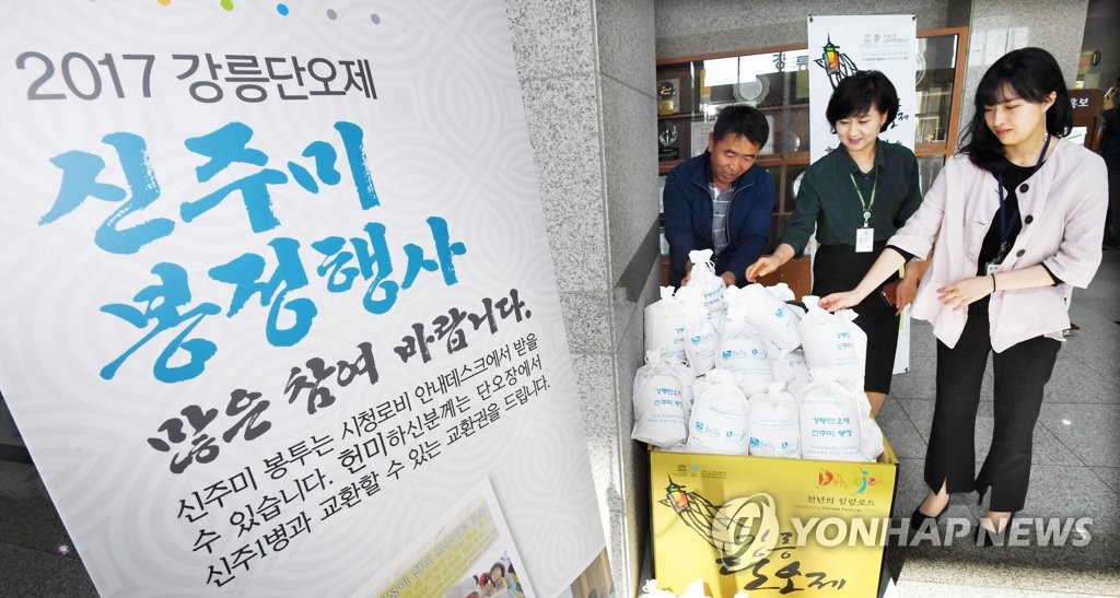 (강릉=연합뉴스) 유형재 기자 = 유네스코 인류무형문화유산이자 중요무형문화재인 천년 축제 강릉단오제의 시작을 알리는 신주미 봉정 행사를 13일부터 5월 5일까지 진행한다.