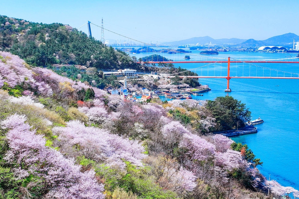 "남해대교 걸으며 흐드러지게 핀 벚꽃과 멋진 경관 감상하세요"