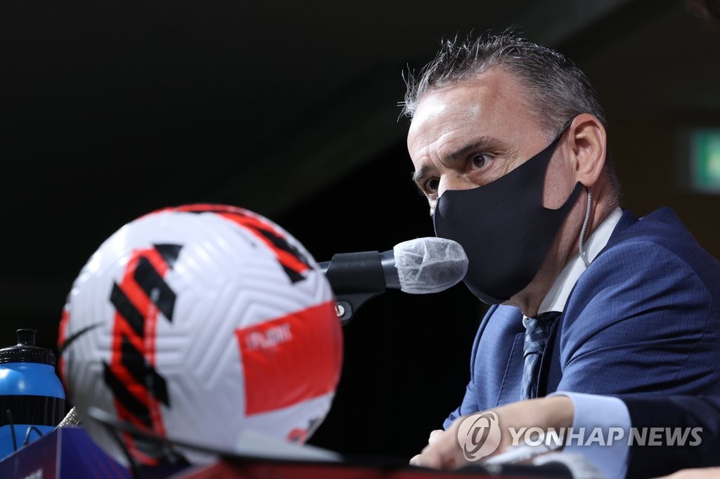| ▲ 답변하는 벤투 감독 (서울=연합뉴스) 김주성 기자 = 파울루 벤투 축구대표팀 감독이 13일 오전 서울 종로구 신문로 축구회관에서 열린 기자회견에서 2022 카타르 월드컵에 대비한 9월 A매치 선수 명단을 발표한 뒤 취재진의 질문에 답하고 있다. 벤투호는 23일 코스타리카와 고양종합운동장에서, 27일엔 카메룬과 서울월드컵경기장에서 평가전에 나선다. 2022.9.13 utzza@yna.co.kr r |