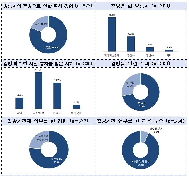방송 외주제작 스태프 10명 중 8명 "결방으로 피해 경험"