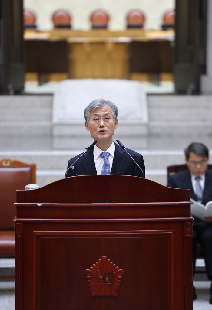 Supreme Court Chief Justice Cho Hee-dae addresses a ceremony to mark the start of business for the new year at the court in Seoul on Jan. 2, 2026. (Yonhap)