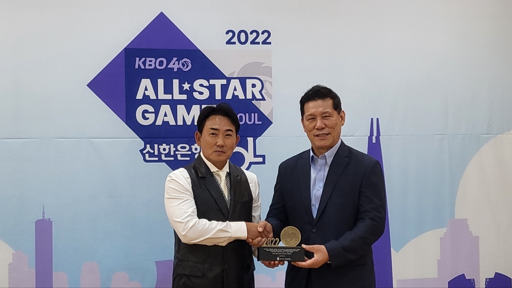 | ▲ 허구연 KBO 총재(우)에게 감사패를 받는 가수 이승철(좌) [MLD엔터테인먼트 제공. 재판매 및 DB 금지] |