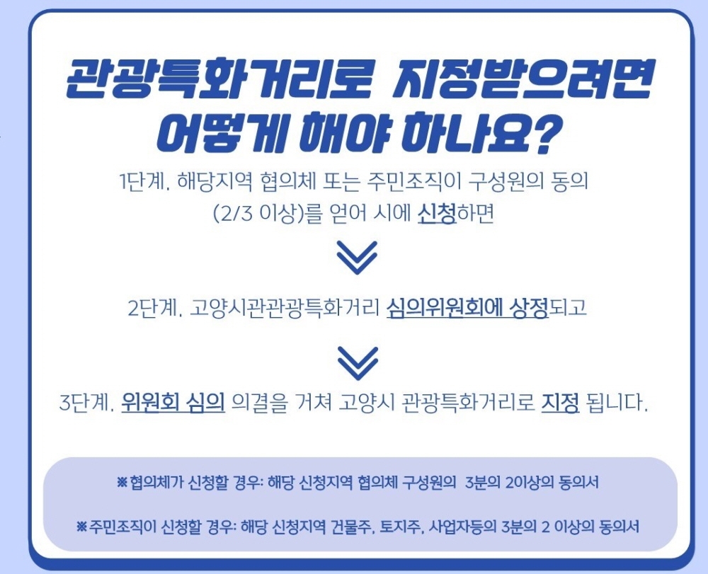 고양시 "관광특화거리 지정 신청받습니다"