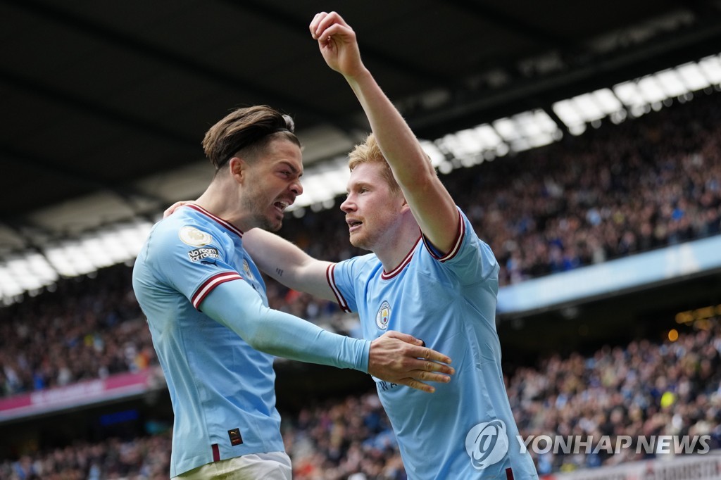 | ▲ 그릴리시와 득점 기쁨 나누는 더브라위너 [AP=연합뉴스] |