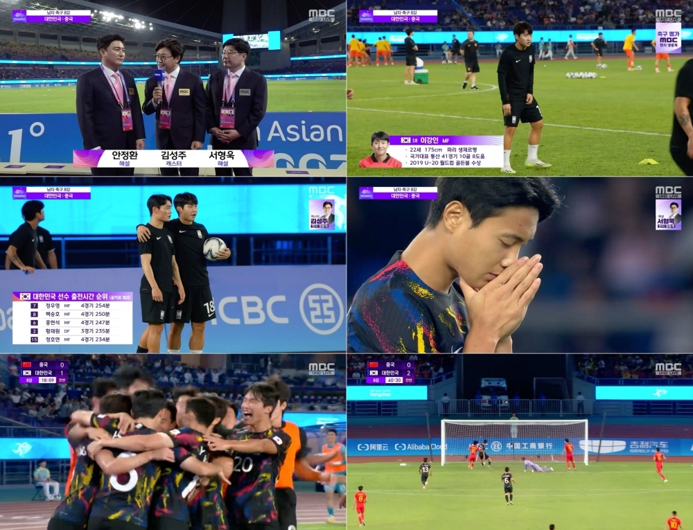 지난 1일 중국과의 8강전에서 MBC의 '항저우아시안게임'은 안정환·서형욱 해설위원과 김성주 캐스터의 중계를 앞세워 8.1%의 시청률로 1위를 기록했다.